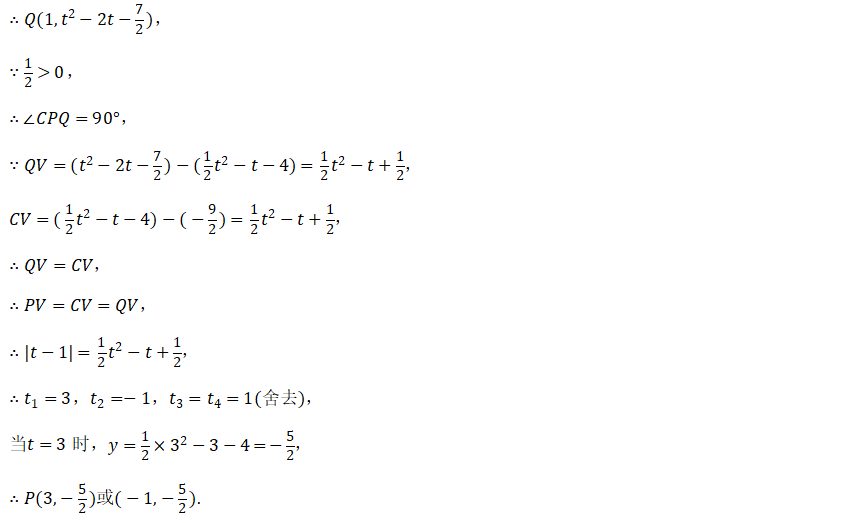 设$P(t,\dfrac{1}{2}t^2-t-4)$